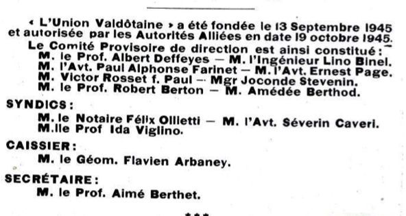 13/09/1945 – 13/09/2025 Chi mi legge e conosce sa quanto profonda sia la mia passione per la storia e per le tradizioni valdostane. Oggi ricordiamo l’ Union Valdôtaine , che compie ottant’anni dalla sua fondazione. Per farlo, ho scelto di lasciarmi ispirare da un giornale dell’epoca, L’Union Valdôtaine del 15 dicembre 1945. “La Valle d’Aosta, lungo i secoli, ha sempre custodito la nostalgia delle proprie radici. Un sentimento che riaffiorava con forza ogni volta che pressioni esterne tentavano di soffocare la sua identità. Già dall’Ottocento il nodo più sensibile era la lingua francese, difesa con tenacia da generazioni di valdostani contro le spinte uniformatrici dello Stato. A quella battaglia se ne affiancarono altre: la richiesta di decentralizzare i servizi, mantenere le istituzioni locali, proteggere tutto ciò che rappresentava la specificità culturale e civile della nostra Valle. Le promesse di Roma restarono spesso lettera morta, e la fiducia nelle parole del governo venne meno. Poi arrivò il fascismo. Anche allora furono promessi rispetto e considerazione, ma la realtà fu una persecuzione dura, umiliante, che cercò di spegnere la nostra voce. Eppure il giunco valdostano ( le roseau valdôtain ) si piegò, senza mai spezzarsi. Così, quando la libertà tornò a far capolino, un gruppo clandestino fedele alle tradizioni uscì dall’ombra e devint légion .” In questo clima, segnato da lotte e speranze, il 13 settembre 1945 nacque l’ Union Valdôtaine , riconosciuta poco dopo dalle Autorità Alleate. Non più un movimento clandestino, ma un’associazione con il suo posto al sole, chiamata a essere al tempo stesso muro di difesa e forza di propulsione verso il futuro. Il suo appello era chiaro: unirsi per difendere tradizioni, diritti, cultura; lavorare per elevare la vita morale e sociale della comunità valdostana. Non un ritorno nostalgico, ma un passo deciso verso una ricostruzione che non poteva prescindere dall’identità. Collocata in quel contesto, la fondazione dell’ Union Valdôtaine rappresentò uno dei passaggi significativi della storia politica valdostana del secondo dopoguerra: da associazione culturale e identitaria a movimento politico, realtà che accompagna la vita pubblica della Valle d’Aosta fino a oggi. ---------- 13/09/1945 – 13/09/2025 Ceux qui me lisent et me connaissent savent combien ma passion pour l’histoire et les traditions valdôtaines est profonde. Aujourd’hui, nous nous souvenons de l’Union Valdôtaine, fondée il y a quatre-vingts ans. Pour le faire, j’ai choisi de m’inspirer d’un journal de l’époque, L’Union Valdôtaine du 15 décembre 1945. « La Vallée d’Aoste, au fil des siècles, a toujours gardé la nostalgie de ses racines. Un sentiment qui refaisait surface avec force chaque fois que des pressions extérieures tentaient d’étouffer son identité. Dès le XIXe siècle, la question la plus sensible fut la langue française, défendue avec ténacité par des générations de Valdôtains contre les poussées uniformisatrices de l’État. À ce combat vinrent s’ajouter d’autres : la demande de décentraliser les services, de maintenir les institutions locales, de protéger tout ce qui représentait la spécificité culturelle et civile de notre Vallée. Les promesses de Rome restèrent souvent lettre morte, et la confiance dans la parole du gouvernement s’en trouva ébranlée. Puis vint le fascisme. Là encore, on promit respect et considération, mais la réalité fut une persécution dure, humiliante, qui tenta d’éteindre notre voix. Pourtant, le roseau valdôtain plia, sans jamais se rompre. Ainsi, quand la liberté fit de nouveau son apparition, un groupe clandestin fidèle aux traditions sortit de l’ombre et devint légion. » Dans ce climat, marqué par les luttes et les espérances, naquit le 13 septembre 1945 l’Union Valdôtaine, reconnue peu après par les Autorités Alliées. Elle n’était plus un mouvement clandestin, mais une association ayant trouvé sa place au soleil, appelée à être à la fois un mur de défense et une force de propulsion vers l’avenir. Son appel était clair : s’unir pour défendre traditions, droits, culture ; travailler à l’élévation morale et sociale de la communauté valdôtaine. Non pas un retour nostalgique, mais un pas décidé vers une reconstruction qui ne pouvait pas se faire sans identité. Placée dans ce contexte, la fondation de l’Union Valdôtaine représente l’un des moments significatifs de l’histoire politique valdôtaine de l’après-guerre : d’association culturelle et identitaire, elle devint mouvement politique, une réalité qui accompagne la vie publique de la Vallée d’Aoste jusqu’à aujourd’hui.